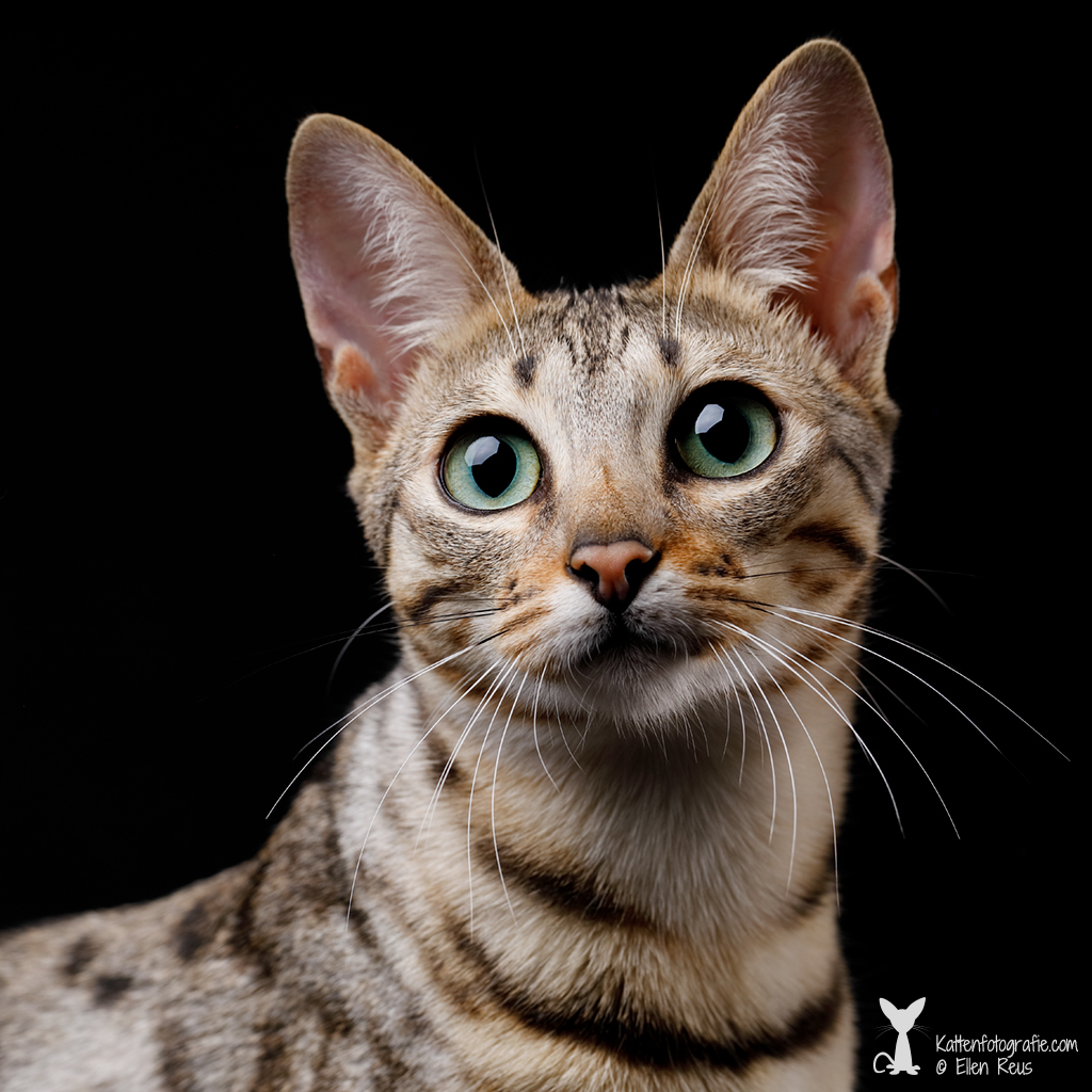 De Savannah-kat is een slanke, elegante kat met een lange, atletische bouw en een exotisch uiterlijk dat doet denken aan haar wilde voorouder, de Afrikaanse Serval. Ze heeft grote, hoog geplaatste oren, lange poten en een korte tot middellange vacht met een opvallend gevlekt patroon. De vacht kan variƫren in kleuren zoals goud, zilver en zwart smoke. Haar lange nek en amandelvormige ogen geven haar een alerte en nieuwsgierige uitstraling.